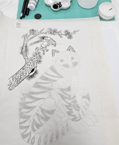 민화는 일반 도화지가 아닌 한지(화선지) 에 그려야 더 멋진 느낌이 나요.